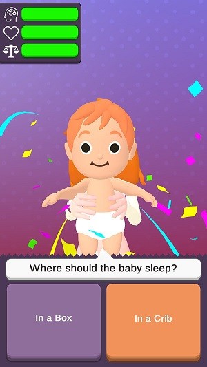 父母的抉择 中文版在这里玩家将要拥有一个小宝宝,你的任务就是随意捣乱,在游戏中去摸索经验,想办法让孩子有一个圆满的人生。不同风格的场景切换让游戏充满新意特色玩法互动自由搭配趣味升级。把睡觉的人的连上画满乌龟,还有各种游戏模式等你来体验,你会对他生活的任何方面帮助他做决定。从换尿布,喝奶粉,换衣服开始,然后还能够为他准备车玩具。