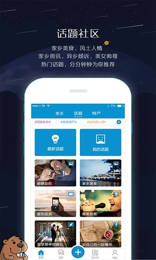 话题社区,聊家乡,聊小吃,聊美女,天天新话题。在这里你可以创造发现最有趣的话题。