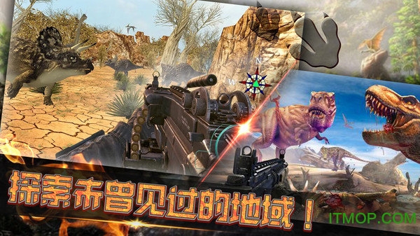 恐龙岛生存考验老版本拥有出色的画面和恐龙建模在限定的时间内,玩家将在一座荒岛上开始生存冒险,随时都可以玩,在这个充满恐龙的世界上玩家将会被传送到某个地区只要消灭掉雷达下的所有恐龙即可通过考验;超多不同的武器可以通过击杀恐龙获得的分数来进行解锁哟。