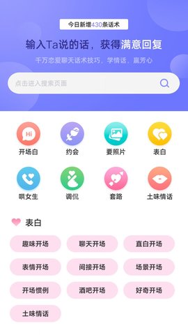 社交话术,这款应用内汇聚了海量的社交话术,让用户能够轻松的选择进行使用。