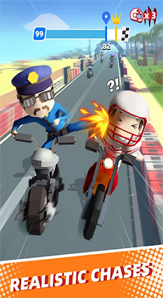 在每一场比赛中,解锁更多的人物和摩托车,使最好的比赛和冲到终点线。