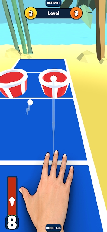 游戏的时候玩家你的最终目标就是将乒乓球弹入到水杯当中去;
