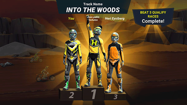 游戏分为多种模式有人机模式和多人联赛模式玩家可以自由选择,游戏操作难度不高,采用了触屏的方式点击游戏画面,简单容易上手。在面对颠簸的道路,玩家要非常小心谨慎,适当减速一面自己摔倒,以最快的速度到达终点,获得游戏胜利。