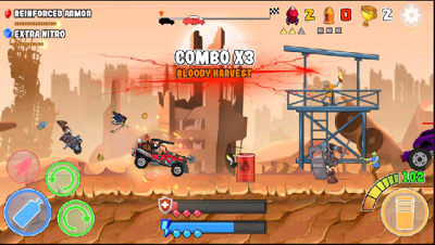 僵尸碰撞赛车,经典的赛车撞僵尸游戏。游戏采用街机画风,超多炫酷赛车选择,疯狂撞击一波波僵尸,消灭所有的僵尸完成你的挑战任务,升级赛车吧。