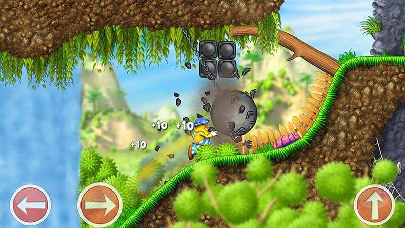 游戏的另外一大亮点是关卡的长度相较于其他的横版闯关都要更长一些。可能你要说,这算不得优点,想说的是正是因为长,反而显得更好,因为游戏单个关卡的耗时虽长但是过程并不枯燥,玩家在关卡中不断前行收集金币,由于场景设计元素非常丰富,加入了大量可破坏的元素,金币往往就需要通过不断破坏这些物体来获得,爽快感十足,因此玩家在稍显冗长的关卡中也并不会感到枯燥乏味。