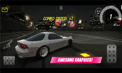 单人模式,收集漂移点数和赚取金币,在城市中找到隐藏的奖金,获取漂移成就,尝试不同的物理环境(泰玛士&雪景)