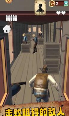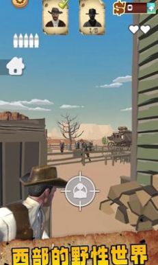 玩家在游戏中是一名牛仔,你将骑马导出去冒险,途中你会遇到很多敌人,用你的精湛的抢技击败他们。