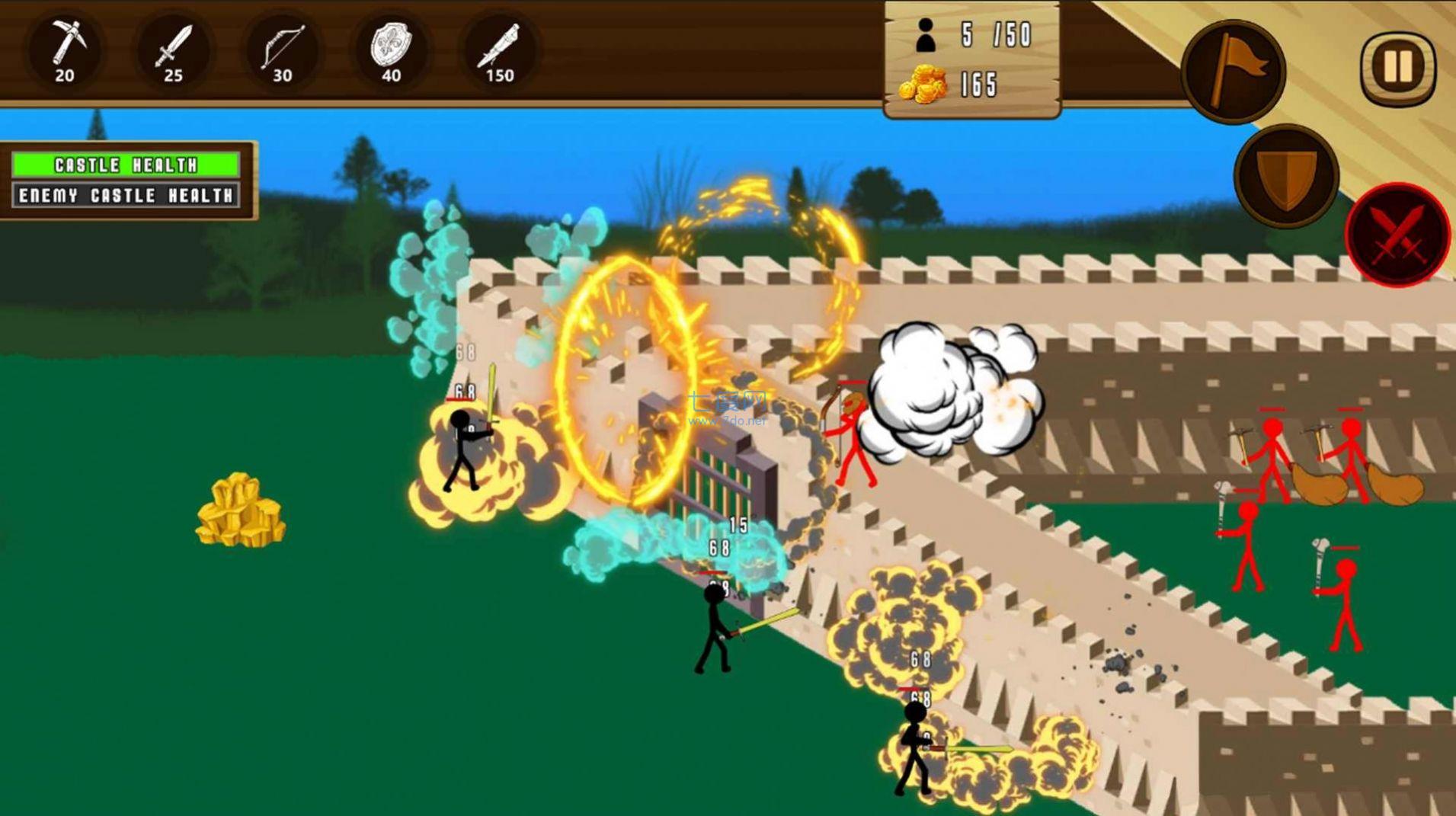 在这个火柴人城堡战斗游戏中有不同类型的火柴人;
