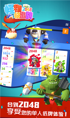 怪物快出牌是一款非常容易沉漫其中的纸牌游戏,游戏融合了纸牌接龙的怀旧情怀和超火爆的2048游戏的设计概念。你要设计纸牌的各种排列组合方式,将相同的纸牌进行合并,这样就能拿到高的分数,来不断挑战高分吧!