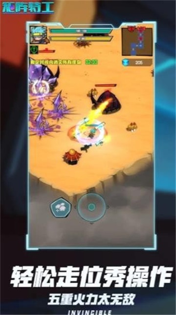 矩阵特工是一款竖屏操作的弹幕射击游戏,华丽的特效,消灭所有敌人,灵活转换自己的武器装备来实现你的挑战目标,升级技能和增加力量,化身超级战士,你可以灵活使用各种武器,学习使用技能的组合,玩家可以收集道具,使武器的攻击威力变得更强,玩家只需要操纵角色移动,角色就会自动射击。同时,你可以用各种悬浮武器和各种技能战胜你的对手。