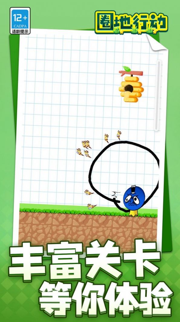 圈地行动是款益智闯关小游戏,游戏玩法主要以画线为主,玩家在里面需要通过画线的方式来保护蓝大王不被蜜蜂蛰,以及躲避各种各样的陷阱。游戏提供的挑战关卡非常丰富,难度会越来越高,操作比较简单,动动手指就可以轻松完成,快来试试吧!