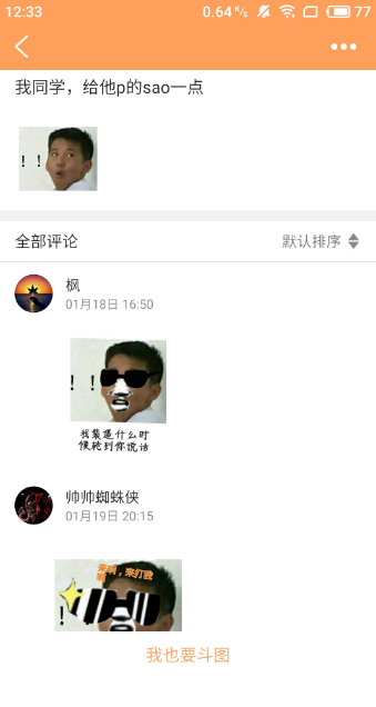 斗图工厂app是一款好用的斗图表情包应用。集合了海量的趣味表情包,来自全国各地的网友不断的分享哦。每天更新,轻松保存使用,使您在聊天中占据上峰哦。有兴趣的就快来下载使用吧。