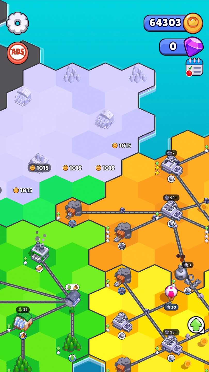 超级好玩的放置类世界建设模拟器游戏,以供应链为核心,让你一次一格,逐步打造出整个人类文明。通过伐木、采矿、制作和加工原材料来赚取金币,然后再用它们来升级你的建筑设施,增加你的利润,好让你得以开辟更多的农场与城市,解锁一片又一片大陆,最终解锁这广阔世界中的每一个角落。