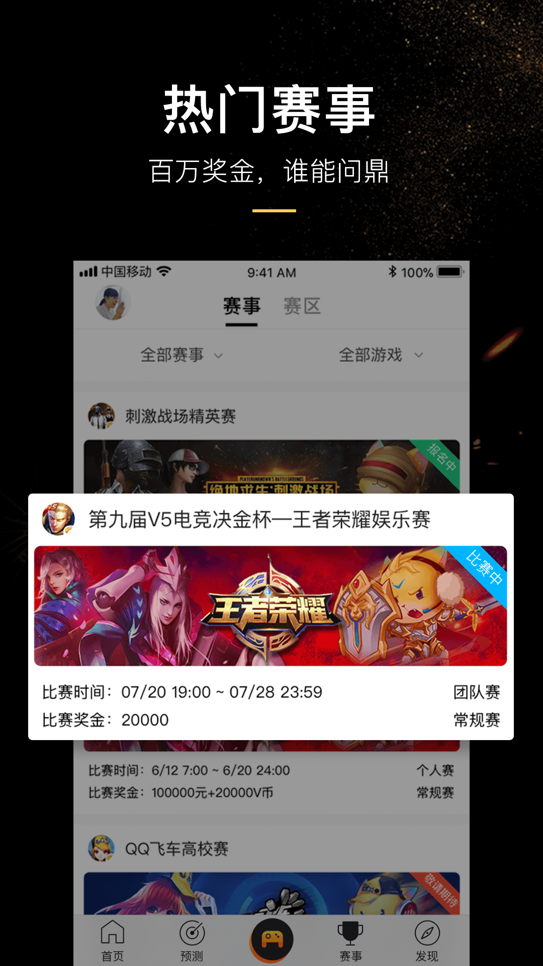 V5电竞APP一款可以在线进行观看电竞赛事、预测赛事信息、创建比赛等项目的应用,让喜爱玩游戏的你可以更多的接触到电竞赛事;电竞已经成为了体育部公布的体育项目了,让更多的人可以参与到电竞赛事中来,可以有效的提高公民对电竞的认知;在线可以进行组队,参加线上的电竞比赛,不断的积累自己的比赛经验,重要的是还可以有机会获得大奖哦。