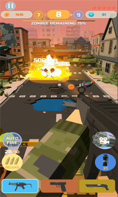 僵尸都是像素的设计,比较像我的世界那种风格,虽然看起来比较的萌,但每一个都是奔着取你性命而来,千万不要手下留情,尽情射击;