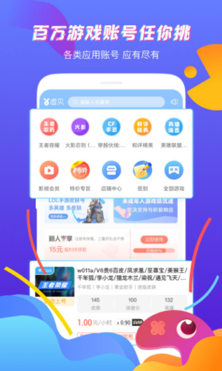 虚贝租号app是一款好用的租号平台应用,为用户提供手游游戏、端游、影视平台的账号租借服务哦。超低的价格,轻松的即可进行租借。专业的租借平台,提供安全有保障的租借服务,有需要的欢迎来下载使用哦。