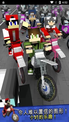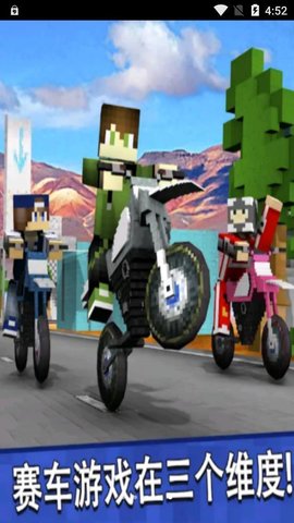 比赛所用的的摩托车和角色都是用方块和像素的风格设计的。