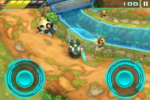 在《机甲格斗》中,你将作为一名配备了精良武器的武装机器人,你要做的就是捍卫你的组织你的家园,将成千上万的敌人悉数歼灭。游戏设计了多个战斗场景,有海洋有陆地有森林,而敌人也是多种多样。游戏采用双摇杆操作,左摇杆控制机器人移动,右摇杆在“自动瞄准”功能开启时为射击键,在“自动瞄准”关闭时则控制机器人的射击方向。当敌人靠近时机器人会自动挥刀攻击。来犯之敌越来越多也越来越强大,你只有不断地锻炼自己、升级装备、提高自己的能力来对付他们。战斗吧!不停地击杀敌人!攻击吧!打倒他们!