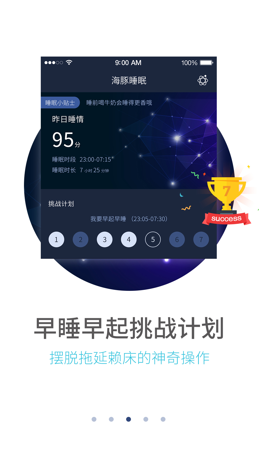 根据习惯形成原理制定的,以7天为一个周期的早睡早起挑战计划,助你摆脱睡前拖延、赖床等不良习惯,提升睡眠效率。