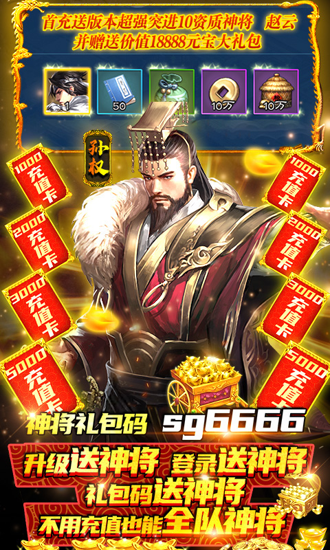 sg6666:礼包送神将,输入礼包码即可获得橙色神将!