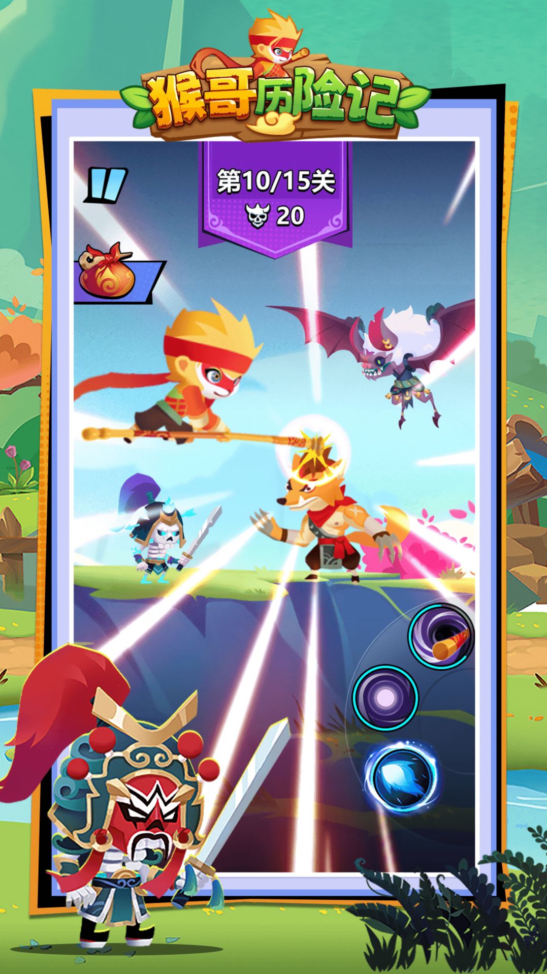 猴哥历险记是一款非常有趣的冒险对战手游,这款游戏中玩家将控制着大家都熟知的经典角色孙悟空在这个世界内冒险。游戏中翻新概念在这里你可以为猴哥患上各种各样的皮肤,还能随便的去六界的任意地方!