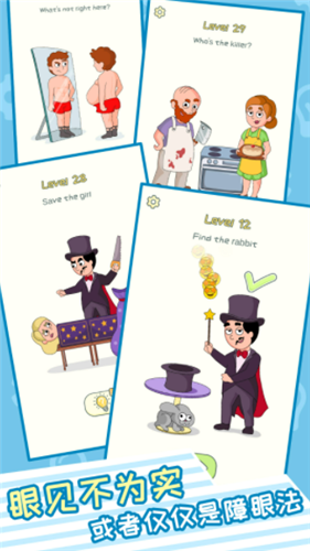 最囧烧脑游戏2游戏画风非常魔性出色有趣的挑战内容,玩家需要高手到策划满满的恶意,不过不要被蒙蔽了双眼哦,精美细腻的游戏画面设计,喜欢的朋友快来下载吧。