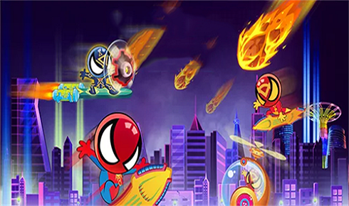 蜘蛛侠踩着飞行滑板逃出重重关卡,小心那些阻挠你离开的机器人、火箭等障碍。