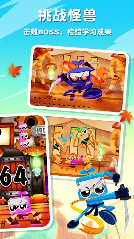 乘法忍者挑战是一款儿童的益智类游戏,游戏中可以通过简单的游戏来学习各种运算知识,可以让你轻松简单的激发孩子的学习兴趣,让你在游戏的乐趣中学到不同的数学知识,让孩子在学中玩,玩中学,可以让孩子沉浸在学习的氛围中间,喜欢这款游戏的赶快来下载体验吧。