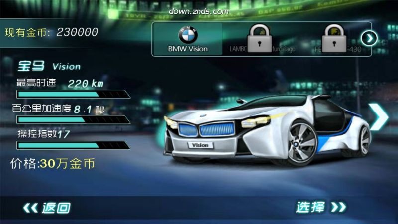 游戏中你可以选择各种性能的赛车,前往多种样式的赛道,去挑战不同的竞赛任务。