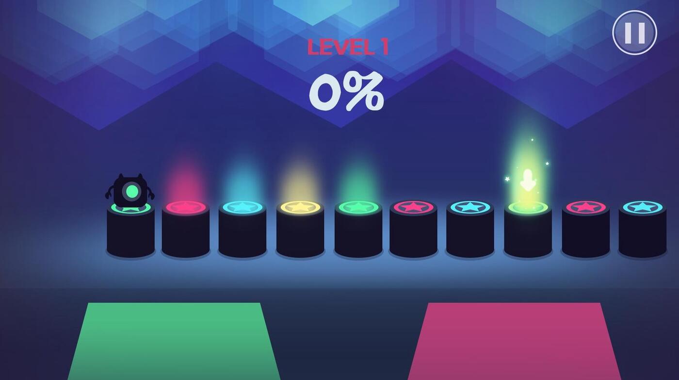 游戏和《永不言弃》玩法类似,游戏主要以音乐节拍为主的跳跃性游戏,游戏的玩法和操作都很简单,玩家们点击屏幕上对应的颜色方块控制颜色主角进行跳跃前进;点击错误的颜色方块时,主角粉碎,游戏结束。是一款很有创意的游戏,感兴趣的玩家赶快来试试吧。