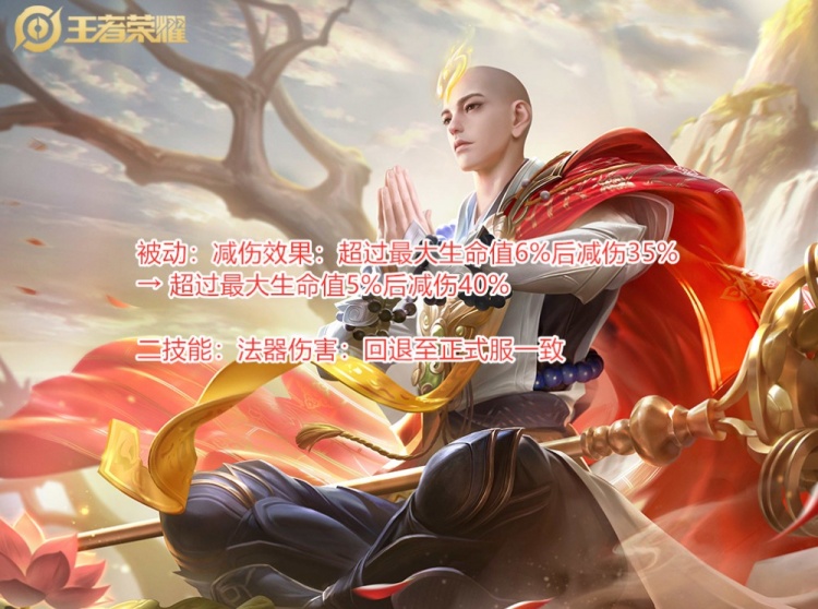 属于强度上升。本次调整加强了被动的减伤效果,使得自己超过最大生命值6%的减伤35%提升到了40%,不仅如此,而且还大幅度减少了金蝉本身被动触发的生命值。也就是说,现在基本上很少的伤害就可以触发被动的减伤效果,这使得金蝉会有着更高的坦度,提升自己和团队的扛伤能力,也对不少爆发型英雄有很强的克制效果。