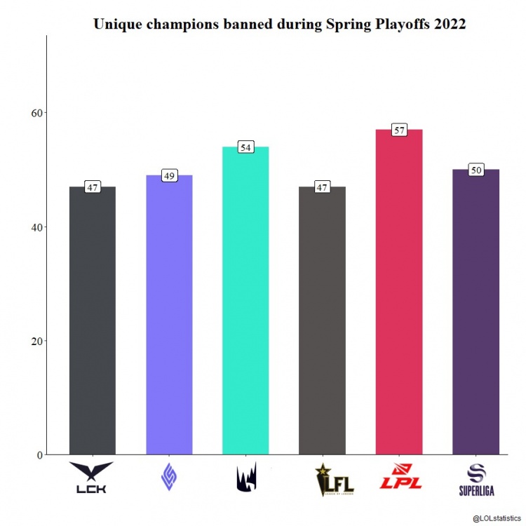 LCK:47,LCS:49,LEC:54,LFL:47,LPL:57,SUP(丹麦联赛):50
