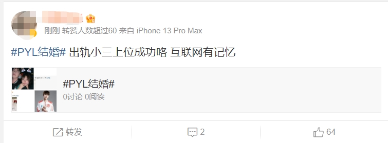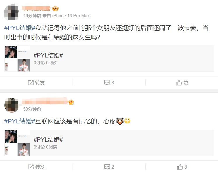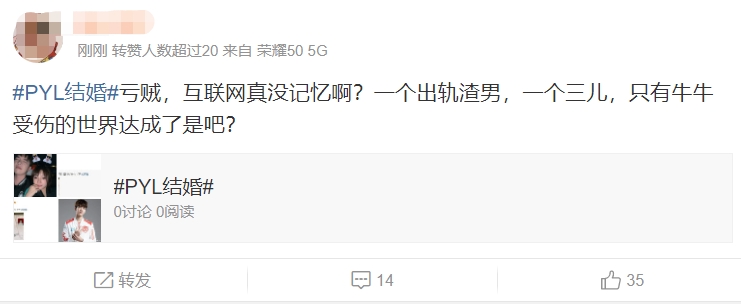 大喜之日被喷出轨渣男+小三?PYL回应:大喜日子积点口德!