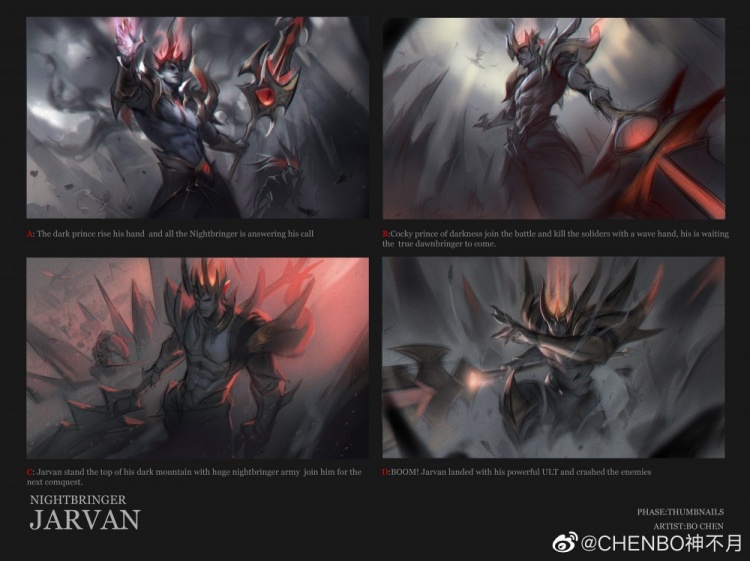 昨日拳头官方插画师在微博上分享了一组黑夜使者皇子原画细节,并配文:最近画的灰烬使者皇子要上啦,希望大家都有六神装,碾压全场哈~