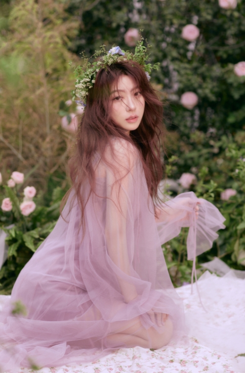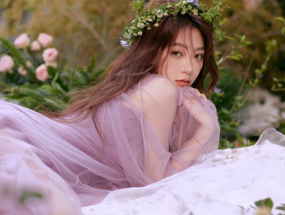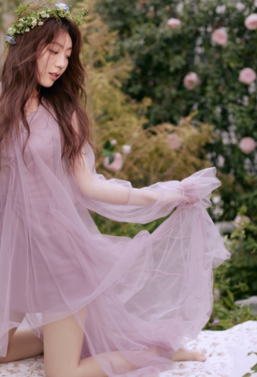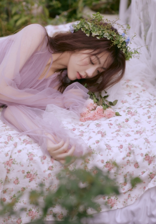 解说天云晒照:头戴花冠 身着透明裙摆 于花床间若隐若现