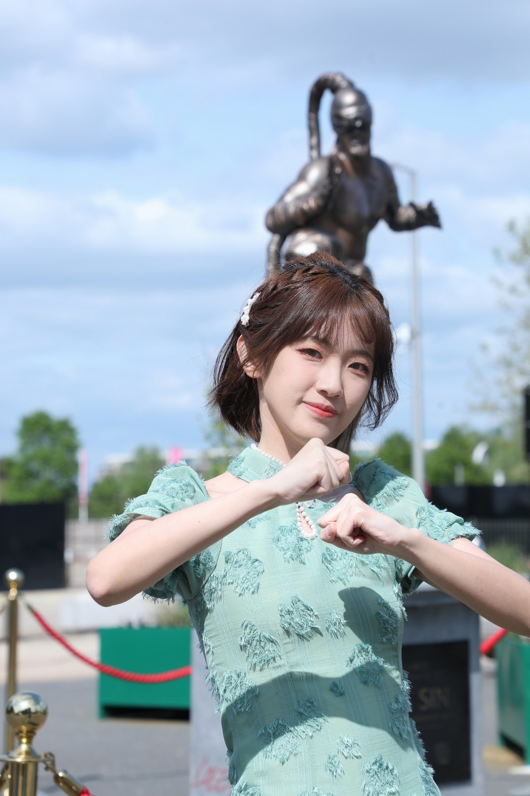 主持人夏安分享伦敦现场观赛照:黛绿色旗袍,展现国风美女韵味