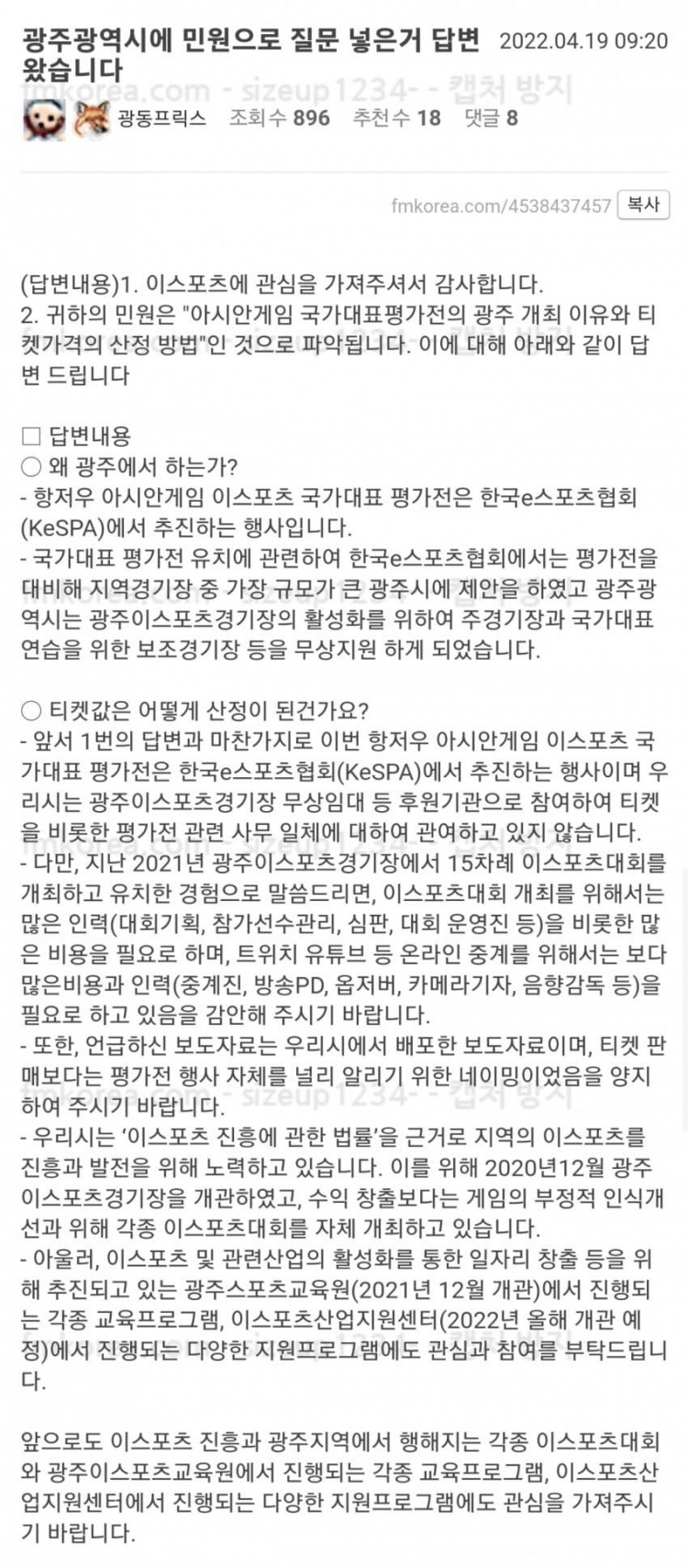 另外有粉丝向光州市询问,光州市给出回复:为了激活光州电竞场馆(为了给光州电竞场馆带来热度),进行热身赛的主场馆及进行训练的副场馆等,全部都是免费提供给Kespa的。